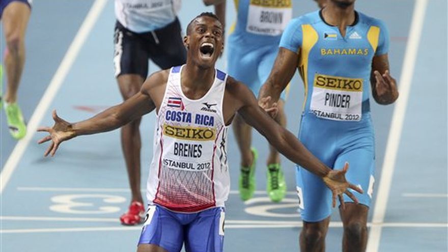 El costarricense Nery Brenes avisó sus intenciones para los Juegos Olímpicos al ganar el sábado la medalla de oro en los 400 metros del mundial de atletismo bajo techo. Brenes cronometró 45.11 segundos, para superar a los bahamenses Demetrius Pinder (45.34) y Chris Brown (45.90). Este fue el mejor resultado en la carrera del costarricense de 26 años, quien el año pasado conquistó el oro en los Juegos Panamericanos de Guadalajara y asoma como candidato al podio para los Juegos Olímpicos de Londres. Brenes terminó cuarto en los dos mundiales bajo techo anteriores. Por su parte, la cubana Mabel Gay obtuvo la medalla de bronce en el salto triple con un brinco de 14,29 metros. Gay superó apenas por un centímetro a su compatriota Yargeris Savigne, que quedó en el cuarto lugar. El estadounidense Ashton Eaton fijó un récord mundial en el heptatlón, al conquistar el oro con 6.645 puntos. Eaton dominó la competencia de dos días desde el comienzo, y selló la victoria con un dominante triunfo en los 1.000 metros. "Estoy bien, sano y en buenas condiciones, y sabía que si todo salía bien, podía lograrlo", comentó Eaton, quien rompió su propio récord de 6.568 puntos. El estadounidense Justin Gatlin ganó los 60 metros lisos con tiempo de 6.46 segundos, ocho centésimas menos que el jamaicano Nesta Carter. El británico Dwain Chambers se quedó con el bronce. Gatlin ganó su primer oro desde que cumplió con una suspensión de cuatro años por dopaje. "Siento como si hubiese vuelto a nacer", comentó Gatlin, quien agregó que buscará clasificarse a los Juegos Olímpicos, ocho años después de ganar el oro en los 100 metros en Atenas. Sanya Richards-Ross sumó otro oro al botín estadounidense, al imponerse en los 400 metros con tiempo de 50.79. "Estoy feliz porque pude correr con la delantera desde el comienzo", señaló Richards-Ross.