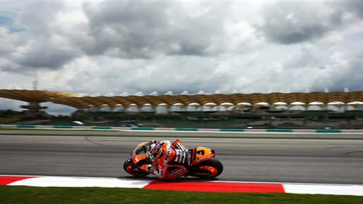 El español Dani Pedrosa, de Honda, obtuvo el sábado la primera posición de largada para la división MotoGP del Gran Premio de Malasia. Pedrosa sufrió una caída temprana pero se recuperó y detuvo el reloj en dos minutos y 1.462 segundos en la clasificación disputada en el Circuito Internacional de Sepang. Segundo a corta distancia quedó el flamante campeón Casey Stoner, de Australia, también de Honda, con un tiempo de 2:01.491. Stoner se aseguró el título mundial en la Isla Phillip en Australia la semana pasada. El italiano Andrea Dovizioso dio también el tercer puesto a Honda con una vuelta de 2:01.666 delante del estadounidense Colin Edward, de Yamaha, con 2:02.010. "Anduve más rápido por la tarde y en la clasificación mejoré el tiempo de la práctica libre", afirmó Pedrosa, quien se perdió la carrera del año pasado con una fractura de clavícula. "Hice algunos cambios en mi moto y realmente estoy muy satisfecho como salieron las cosas ya que hacía mucho calor". En la categoría Moto2, el suizo Thomas Luthi ganó su primera "pole position" con su mejor vuelta de 2:07.512 para adelantarse al alemán Stefan Bradl, que fue segundo con 2:07.724. Bradl, puntero en el campeonato con 254 puntos, podría asegurarse el título mundial si gana la competencia del domingo, mientras su escolta Marc Márquez, que tiene 251 puntos, se clasificó apenas en el puesto 36. En 125cc los dos primeros fueron españoles: Nicolás Terol, Aprilia, con 2:13.594, delante de Héctor Faubel. Tercero fue el alemán Sandro Cortese, quien encabeza las posiciones con 25 puntos.