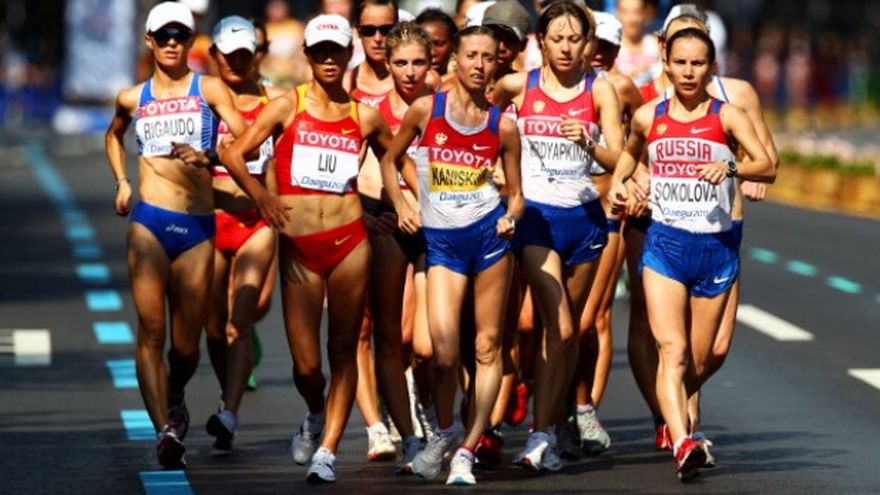 Kirdyapkin ganó el oro en los 50 kilómetros y Kaniskina ganó la plata en los 20 kilómetros.