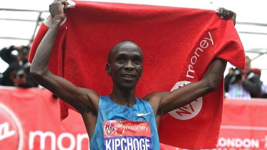 Kipchoge, excampeón mundial de 5.000 metros, finalizó los 42,195 kilómetros (26,2 millas) en dos horas, 4 minutos y 42 segundos bajo un cielo nublado en la capital británica.