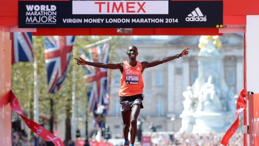 LONDRES (AP) -- Wilson Kipsang fue el último de los corredores de élite en llegar a Londres, pero el primero al momento de cruzar la meta el domingo. Su caótica semana de viajes no tuvo impacto en el maratón, y el poseedor del récord mundial superó a sus rivales para capturar su segundo título en Londres y romper el récord de la prueba. Kipsang completó el recorrido de 42,2 kilómetros (26,2 millas) en 2 horas, 4 minutos y 29 segundos -11 segundos más rápido que el récord anterior en Londres impuesto por Emmanuel Mutai en 2011- al final de una semana que comenzó cuando le robaron su pasaporte y su visa de su auto en el lugar donde entrena en Kenia. A pesar de que tenía un pasaporte de repuesto, Kipsang tuvo que viajar desde la ciudad de Iten a la capital Nairobi para obtener una visa de reemplazo antes de llegar dos días después a Londres el jueves. Pero eso no fue ningún impedimento el domingo para Kipsang, de 32 años, que se desprendió del también keniata Stanley Biwott en los dos últimos kilómetros. "Los líderes se desprendieron demasiado pronto para mí, así que tuve que esforzarme", dijo Kipsang, que también ganó la carrera en 2012. "Hacia los 31 kilómetros (19 millas) fue cuando decidí presionar más y me sentí muy cómodo y fuerte. Y entonces presioné de nuevo hacia la línea de meta y fue entonces cuando me separé". Biwott terminó 26 segundos detrás de Kipsang, y el depuesto campeón de Londres Tsegaye Kebede llegó tercero, más de dos minutos después de Kipsang. A pesar de la soleada jornada londinense, la afición local quedó decepcionada por el debut en maratón completo del bicampeón olímpico Mo Farah, quien terminó octavo, casi cuatro minutos detrás Kipsang. A pesar de fracasar en su intento de igualar sus hazañas en las pistas de la ciudad en 2012, cuando ganó los títulos de los 5.000 y 10.000 metros en los Juegos Olímpicos, Farah regresará para hacer otro intento en el maratón. "No voy a terminar como en este", dijo Farah. "Regresaré. Es un asunto de experiencia y aprendizaje". En la rama femenina, que terminó en un sprint final frente al palacio de Buckingham, Kenia también copó los dos primeros lugares. La dos veces campeona mundial Edna Kiplagat ganó en su cuarto intento en Londres, al terminar el recorrido en 2:20:21, tres segundos por delante de su compatriota Florence Kiplagat.