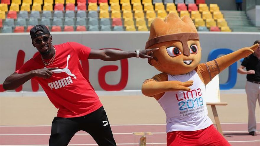 Bolt estuvo acompañado en su visita al estadio por el presidente del comité organizador de Lima 2019, Carlos Neuhaus, el alcalde de la capital peruana, Jorge Muñoz, y Milco, la mascota de los próximos Panamericanos, inspirada en el cuchimilco, una figura de cerámica de las antiguas civilizaciones prehispánicas de Perú.