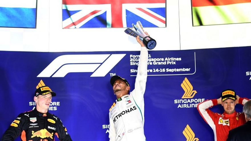 Lewis Hamilton logró este domingo el triunfo en el Gran Premio de Singapur con más comodidad de la esperada, ya que Sebastian Vettel, su rival por el título, sólo terminó en tercer puesto, víctima en parte de los errores tácticos de su equipo.