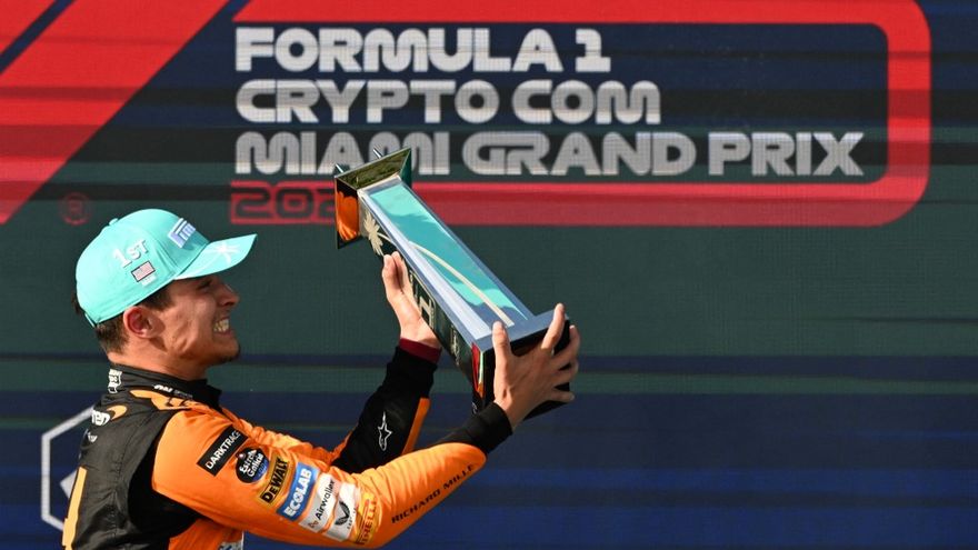 El piloto Lando Norris de la escudería McLaren se llevó el Gran Premio de Miami cortando con la racha ganadora de Max Verstappen del Red Bull.