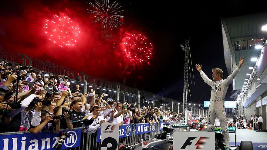 El piloto alemán de Mercedes, Nico Rosberg, que salió desde la pole, se impuso este domingo en el Gran Premio de Singapur de Fórmula 1, al término de una igualada carrera, por delante del australiano Daniel Ricciardo (Red Bull).