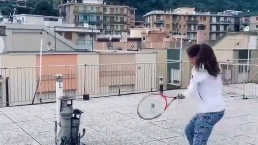 Derecha, revés, derecha, revés... De una azotea a la otra, con las barreras de protección de los edificios como única red. Dos jóvenes tenistas italianas han decidido que el confinamiento no detendrá su pasión y han encontrado la manera de disfrutar de un buen peloteo.