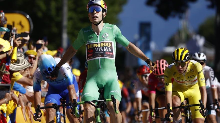 La etapa se decidió al esprint y Van Aert, maillot verde (clasificación por puntos), fue el más rápido, consiguiendo su octava victoria de etapa en el Tour. El corredor belga de 27 años había ganado en esta edición en la cuarta jornada, en Calais, y vistió el maillot amarillo de líder hasta que se lo arrebató Pogacar el jueves.