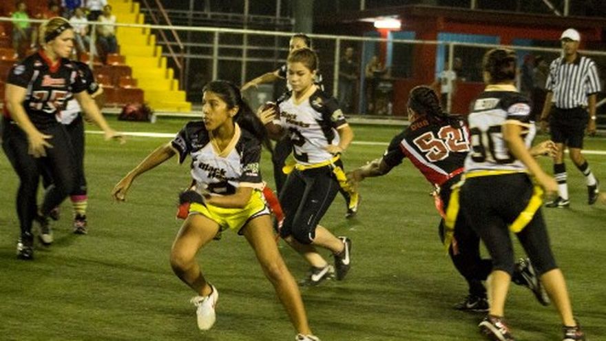 Las Blackhawks se aferraron a su buena defensa lo que les permitió conseguir el tirunfo ante las Rebels, por 38 a 6, en un partido del Torneo 5 vs. 5 de la Liga de Flag Football Femenino de Panamá (LIFFF) Verónica Vega concretó cuatro intercepciones que ayudaron a las Blackhawks para que obtuviesen la victoria. En otro partido de la jornada, que se realizó anoche, las Cyclons derrotaron a las Dragonflies, 7 a 0. Vanessa Castillo interceptó el ovoide y lo llevó a la zona de anotación para marcar un touchdown para las Cyclons que luego lograron la conversión del punto extra que al final le dio cifras definitivas al juego. Además, las Blue Angels derrotaron al Wolfpack por 8 a 2. Los juegos se realizaron en la cancha Luis Ernesto "Cascarita" Tapia de la Ciudad Deportiva Irving Saladino. FOTO: Ramsés Jaén (Ilustrativa)