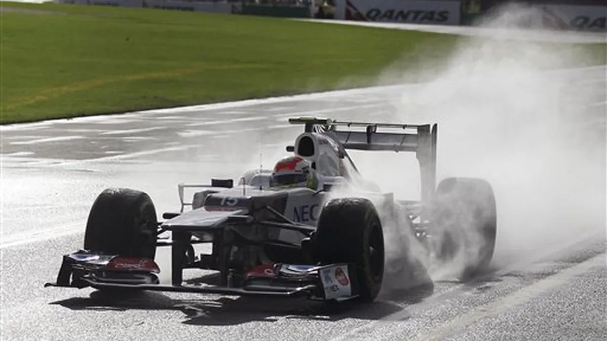 El piloto de McLaren, Jenson Button, logró el tiempo más rápido en las prácticas del viernes del Gran Premio de la Fórmula Uno en Australia, que abre la temporada, aunque el agua en la pista por la lluvia en la segunda sesión impidió a los equipos mostrar su verdadera velocidad. El británico Button impuso el mejor tiempo en la primera sesión, con un minuto 27.560 segundos y cubrió 11 vueltas. Superó a su compañero de equipo y paisano, Lewis Hamilton, quien fue segundo con 1:27.805 y realizó 14 vueltas. El aguacero hizo que los tiempos de ambos fueran mayores en la segunda sesión: Button cronometró 1:33.039 (18 vueltas) y Hamilton, 1:33.252 (11 vueltas). En la segunda sesión, el mexicano Sergio Pérez, del equipo Sauber, tuvo el tercer mejor tiempo detrás de Button y Hamilton con 1:30.199 y efectuó 23 vueltas. En la primera sesión, Pérez cronometró 1:30.124 (22 vueltas). El venezolano Pastor Maldonado, de Williams, cubrió 21 vueltas en la segunda sesión y logró el 17mo tiempo más veloz con 1:34.108. En la primera sesión, Maldonado hizo 16 vueltas y fue el octavo más rápido con 1:29.415. En la segunda sesión, el brasileño Felipe Massa, de Ferrari, fue el séptimo más rápido; cubrió 14 vueltas y su mejor tiempo fue de 1:31.505. Su paisano, Bruno Senna, de Williams, fue 19no con 1:34.312 (17 vueltas). También en la segunda sesión, el español Fernando Alonso, de Ferrari, fue el cuarto más rápido con 1:30.341 (13 vueltas). Su paisano Pedro de la Rosa, del equipo HRT, no estableció tiempo al igual que en la primera ronda. En la primera sesión, Alonso fue el cuarto más veloz con 1:28.360 (21 vueltas). En la segunda ronda de prácticas, el alemán Michael Schumacher, de Mercedes, fue el más veloz pero con un tiempo mayor al de los británicos en la primera sesión y superó por una décima de segundo a su paisano Nico Hulkenberg, de Force India.