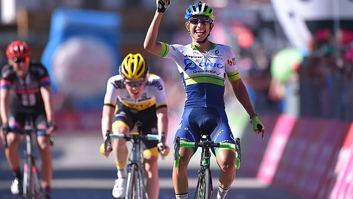 El colombiano Esteban Chaves (Orica) ganó la 14ª etapa del Giro de Italia, este sábado en Corvara, en los Dolomitas, por delante del holandés Steven Kruijswijk (Lotto NL), que despojó de la 'maglia rosa' de líder de la general al costarricense Andrey Amador (Movistar).