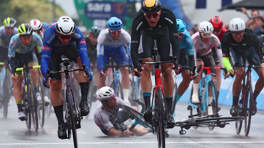 El luxemburgués Alex Kirsch, su compañero en el equipo Lidl-Trek, se rompió la mano. El líder de la formación, Mads Pedersen, escapó por los pelos, únicamente con rasguños.