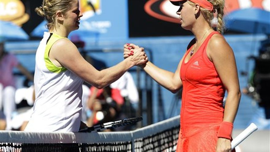 La campeona defensora Kim Clijsters venció este martes a la número uno del mundo, la danesa Caroline Wozniacki por 6-3, 7-6 (4) para llegar a las semifinales del Abierto de Australia, mientras el cuatro veces campeón Roger Federer derrotó al argentino Juan Martín del Potro por 6-4, 6-3, 6-2. El suizo, quien llega a las semifinales del torneo por noveno año consecutivo, mejoró su marca ante el argentino a 8-2. Una de las derrotas sucedió en la final del Abierto de Estados Unidos de 2009 cuando Del Potro ganó en cinco sets y terminó con la racha ganadora de 40 partidos de Federer en el Flushing Meadows. La cuatro veces ganadora en majors se enfrentará ahora a la tercera favorita Victoria Azarenka, quien alcanzó las semifinales el lunes cuando se mantuvo serena ante sus problemas con el servicio y derrotó por 6-7 (0), 6-0, 6-2 a la polaca Agnieszka Radwanska, octava preclasificada. Clijsters ha tenido altibajos en su camino a las semifinales en el torneo por séptima vez después de lesionarse un tobillo y haber salvado cuatro puntos para partido en la victoria del partido de cuarta ronda ante la china Li Na. Tanto Clijsters como Wozniacki comenzaron nerviosas, con tres quiebres de servicio al iniciar el partido. Sin embargo, la belga de 28 años de edad, dictó el juego desde del primer servicio en el cuarto game hasta que sirvió el punto para partido cuando iban 5-3 en el segundo. "Tuve que trabajar muy duro para conseguirlo. Caroline es una gran luchadora", dijo la tenista. En tanto, Azarenka consiguió su apenas segunda victoria en seis partidos de cuartos de final en torneos de Grand Slam. Nunca ha superado las semifinales y su próximo compromiso parece difícil pues enfrentará a Clijsters. La jugadora bielorrusa, de 22 años, extendió su racha ganadora de esta temporada a 10 partidos, incluido el título en Sydney donde venció a Radwanska en las semifinales. "Estoy muy contenta de que haya podido resistir y terminar el partido", dijo Azarenka. "Estoy muy feliz de estar en las semifinales para darlo todo". Azarenka cometió seis dobles faltas y 38 errores no forzados durante las dos horas del partido contra Radwanska, que ha perdido sus cinco partidos en cuartos de final en Grand Slam. El primer parcial se caracterizó por ocho rompimientos de servicio, de los 15 en el encuentro. Más tarde, el segundo del mundo Rafael Nadal jugará contra el checo Tomas Berdych. En las semifinales, Federer jugará con quien resulte ganador entre Nadal y Berdych.