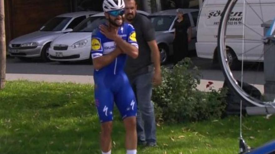 Gaviria se fue al suelo a cuatro kilómetros de la llegada en Konya y finalizó rezagado, a cerca de cinco minutos del ganador de la etapa, su compañero argentino Maximiliano Richeze.