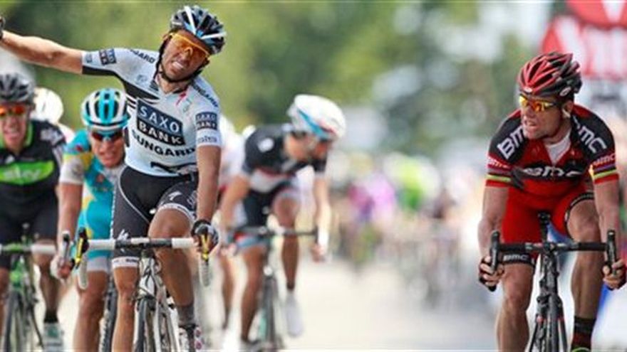 Alberto Contador comenzó el Tour de Francia con el pie izquierdo, pero no se equivoquen: el tres veces campeón dio su primer zarpazo y demostró que no se le puede subestimar. Después de su mal arranque, el español y campeón vigente hizo gala el martes de su clase en la máxima prueba del ciclismo al recortar diferencias con sus principales adversarios. En un final que precisó de la foto para definir el ganador, el australiano Cadel Evans se llevó el triunfo de la cuarta etapa, con Contador como segundo. El cierre fue tan reñido que Contador levantó el puño para celebrar lo que creyó fue una victoria de etapa, pero la foto estableció que Evans, un australiano que ha quedado segundo dos veces en el Tour, fue el triunfador. El colombiano Rigoberto Urán quedó cuarto. La camiseta amarilla al líder de la clasificación general sigue en posesión del noruego Thor Hushovd, un especialista de sprints. Hushovd se aferró a la punta de la tabla general al engancharse con un grupo de corredores que cruzó la meta detrás de los líderes. El recorrido del martes cubrió 172,5 kilómetros entre Lorient y el Muro de Bretaña. Fue un tramo mayormente plano, pero la llegada fue con un ascenso de tercera categoría que favoreció a los ciclistas más capaces de responder a las escaladas en velocidad. Después de ser uno de los damnificados por una caída al inicio de esta edición, Contador demostró que cuenta con las condiciones para pelear por un cuarto título en la ronda gala. "Contador volvió a demostrar que está fuerte", dijo Evans. "Es alguien al cual no se le debe subestimar". "Aún no lo puedo creer, fue un final muy cerrado. Ni siquiera sé si lo tenía en la meta", añadió Evans. "Ganar en frente de Alberto Contador es un bonito regalo". Este ascenso corto sirvió para que Contador enviase un mensaje sobre lo que puede desplegar cuando la carrera se dispute en las alturas, con los puertos de montaña en los Alpes y Pirineos. Logró rebanarle seis segundos de diferencia al británico Bradley Wiggins y ocho al luxemburgués Andy Schleck, número dos en las dos ediciones anteriores. "Sacar ocho segundos en un kilómetro de subida es inmejorable", resaltó Contador. "Por un lado estoy contento porque las sensaciones son buenas. Al final he sido yo el que ha tenido que mover la carrera y he hipotecado un poco mis opciones de victoria, pero hoy se trataba de ver cómo están los rivales y sobre todo ver si podía meter tiempo a algún corredor". Schleck tomó apunte: "perder siete segundos (sic) (ante Contador) no es bueno, pero no es una catástrofe", señaló. "En ningún momento pensé que estaba fuera de competencia. Sólo tuvo mala suerte en el primer día y su equipo no estaba bien preparado para la contrarreloj", añadió. Evans marcha segundo en la general, a un segundo de Hushovd. Wiggins figura sexto, 10 segundos atrás. Schleck está noveno, a 12 segundos. Contador se encuentra a 1:42 detrás y en el 41er lugar.