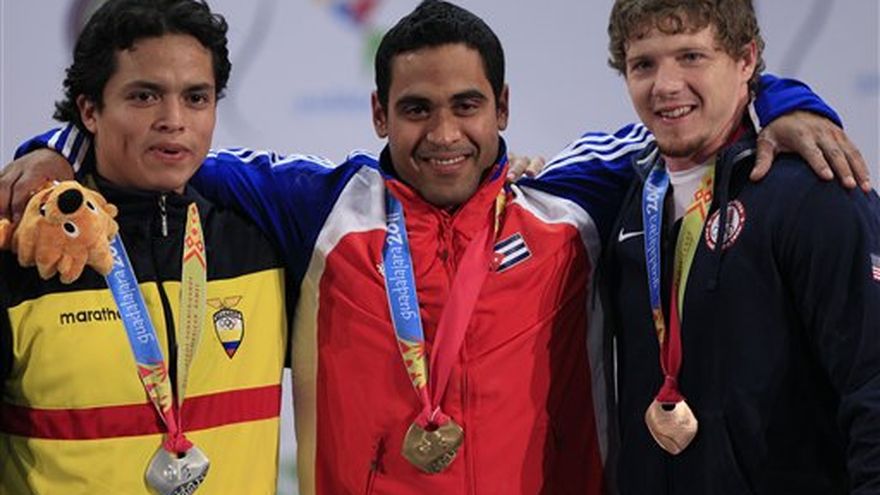 El cubano Iván Cambar arrasó con la competencia y ganó el martes la medalla de oro en la división de 77 kilogramos de hombres en el levantamiento de pesas de los Juegos Panamericanos. Cambar sumó 150 kilos en el arranque y 188 en el envión, para un total de 338. El ecuatoriano Ricardo Flores tuvo un total de 329 (148 y 181) para quedarse con la medalla de plata, y el estadounidense Chad Vaughn levantó 326 (147 y 179) para llevarse el bronce. Cambar es el dueño del récord panamericano en arranque, con 156 kilos, y era el gran favorito para repetir el oro que conquistó en Río de Janeiro 2007. "El pueblo de Cuba estaba esperando esta medalla y yo le había prometido que la iba a ganar de nuevo. Ahora volví a tener el éxito a pesar de que tuve una operación y llevo entrenando apenas seis meses", dijo el cubano, quien fue operado del codo derecho en diciembre. El venezolano José Ocando no terminó por lesión y fue último. Cambar dominó la competencia desde la prueba de arranque en la que inició con 146 kilogramos y lo consiguió cuando quedaban 14 segundos en el reloj. Luego fue por 150 buscando apoderarse de la primera posición y lo consiguió sin muchos apuros. Cambar intentó 153 en su tercer intento, tres kilos menos que el récord de la justa continental que le pertenece, pero no pudo controlar el peso y erró. Para el envión, Cambar superó intentos de 182, 186 y cerró con 188, pero tuvo que esperar un último intento de 190 de Vaughn, quien no lo consiguió y se quedó con el bronce. "Iván es un gran competidor y estoy honrado de estar compitiendo con él y de darle pelea, somos buenos amigos y nos conocemos desde hace mucho tiempo", dijo Vaughn. Flores logró 181 en su primer intento, luego falló con 185 y 188, pero su buen desempeño en el arranque le valió para colgarse la plata. "Fue una competencia de gran nivel y meterse en la pelea es bueno. Dimos lo mejor y aunque trabajamos por el oro, la plata era la que me merecía y la cargo en el cuello con orgullo", afirmó Flores.