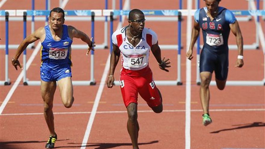 El cubano Dayron Robles se impuso el viernes en la final de los 110 metros con vallas y rompió el récord panamericano con un tiempo de 13,10 segundos. Robles, plusmarquista mundial de la distancia con 12,87, dominó la carrera desde la salida y terminó llevándose la victoria cómodamente. La plata fue para el colombiano Paulo Villar, con un tiempo de 13,27. El bronce fue para el también cubano Orlando Ortega, quien cronometró 13,30. "Estaba muy bien, por eso me permití correr al 90, 92% de mis posibilidades y ganar", dijo Robles, quien dominó la prueba de punta a punta para quebrar el récord que estaba en poder de su compatriota Anier García cuando cronometró 13.17 en Winnipeg 1999. Robles destacó que tuvo una "pequeña contractura" en el biceps femoral de la pierna de arranque y que ello no le permitió correr al límite. Pero señaló que sacó fuerza de donde pudo ya que el objetivo de Cuba es terminar segundo en el medallero general de los Juegos de Guadalajara que ya quedaron en poder de Estados Unidos. "Tenemos una motivación muy grande por coger ese segundo lugar cueste lo que cueste", señaló Robles en alusión a la puja que libran Cuba y Brasil por escoltar a los estadounidenses. "Eso significa muchísimo porque el granito de arena que me tocaba aportar sirvió para algo", dijo Robles. Sobre la carrera indicó que no está del todo conforme con su tiempo, pese a haber sido récord, ya que esperaba algo mejor. "De todos modos, cuando vi que el colombiano se venía me dediqué a ganar como sea y no a pensar en récord", subrayó Robles. Su escolta Villar no le perdió pisada el cubano, pero a la larga debió rendirse ante su superioridad. "Mi estrategia fue salir a correr fuerte, nada más", señaló el colombiano. "Lo que me está pasando a mí es una demostración que Dios es eterno, es grande, conmigo ha hecho un milagro". Recordó que hace unos meses estaba planeando su retiro por una serie de lesiones que lo tuvieron a maltraer desde Beijing 2009. "Ahora corrí a la par del mejor de la historia (Robles) y quedé en el podio de los mejores en el panamericano". El estadounidense Jeffry Porter se clasificó cuarto y los boricuas Héctor Cotto y Enrique Llanos quinto y sexto, respectivamente. Desde que el estadounidense Roger Kingdom ganó el oro en Mar del Plata 1995, Cuba es amo y señor de los 110 con vallas ya que venció en Winnipeg 1999 con Anier García, en Santo Domingo 2003 con Yuniel Hernández y en Río de Janeiro 2007 con el propio Robles.