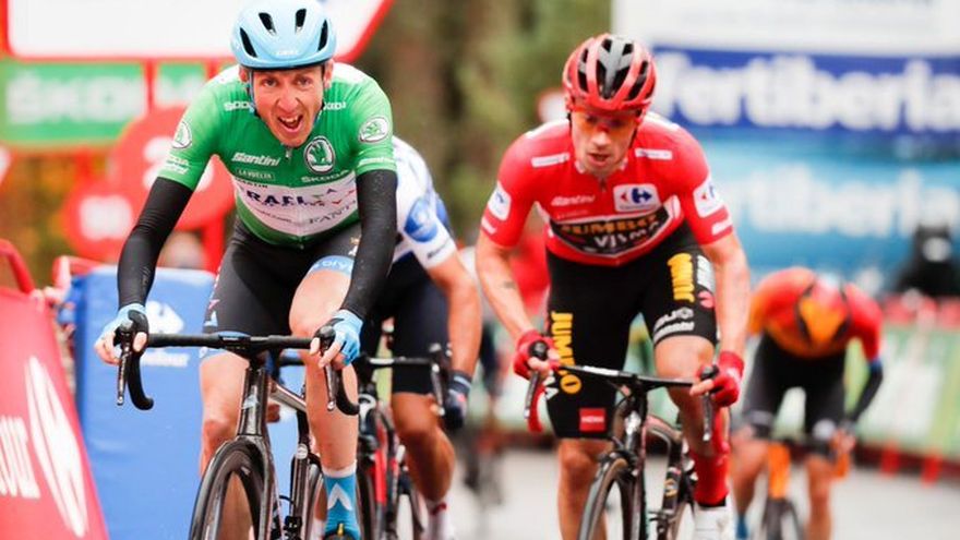 El español Enric Mas (Movistar), que fue sexto en la etapa del día, está cuarto a 32 segundos de Roglic.