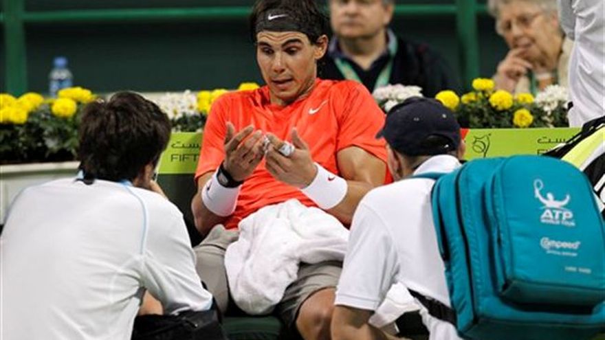 Roger Federer doblegó el viernes a Jo-Wilfried Tsonga 6-3, 7-6 (2) y avanzó a la final del Abierto de Qatar de la ATP, en la que no se medirá con Rafael Nadal porque el español, muy disminuido por algunos problemas físicos, cayó en sets corridos ante Nikolay Davydenko. Davydenko venció a Nadal (cabeza de serie número uno) 6-3, 6-2 en 84 minutos. Fue su cuarto triunfo seguido sobre el español y el sexto en diez partidos. Nadal lució visiblemente lento y torpe. Entre el primer y el segundo set pidió ver al médico y le dijo, "no puedo hacer mi juego. Me siento muy cansado". Davydenko ya le había ganado a Nadal en la final del año pasado, en que también superó a Federer en las semifinales. "Estoy sorprendido de haber llegado a la final. No esperaba jugar tan bien", comentó el ruso. "Estoy contento con mi juego, pero tengo que mejorar mi estado físico". Davydenko admitió que su rival jugó disminuido. "Normalmente es mucho más duro", manifestó. "No estaba bien físicamente. Se cansó mucho". El rendimiento de Nadal fue disminuyendo a medida que progresaba el torneo y el español comenzó a dar muestras de fatiga tempranamente, cometiendo muchos errores. "Estoy jugando buen tenis", comentó Federer (2). "Sea quien sea mi rival en la final, será un buen partido", agregó, antes de saber a quién enfrentará. Federer ganó el torneo de Doha en el 2005 y el 2006 y tiene 22 triunfos y tres derrotas. En el actual torneo no perdió un set. Si bien el segundo set fue a un desempate, Federer dijo que la ruptura de saque que se apuntó al comienzo del partido, en el segundo game, marcó la tónica del encuentro. "Fue una ruptura vital para mí. Allanó el camino el resto del partido", expresó. "El segundo set fue más peleado y saqué muy bien". En el tiebreaker, el marcador quedó 2-2 y a partir de ese momento Federer se apuntó cinco puntos seguidos.
