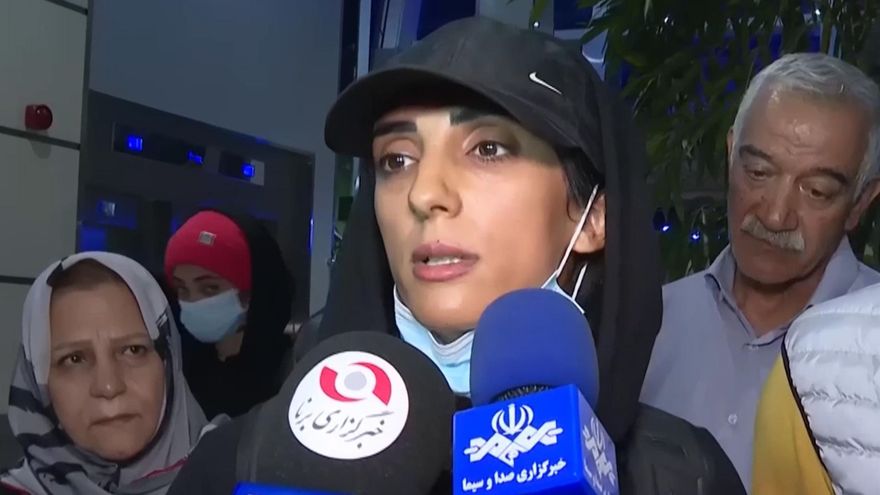 La escaladora iraní Elnaz Rekabi, que compitió sin velo en un torneo en Corea del Sur, volvió el miércoles a Teherán, donde una multitud la recibió como una heroína en el aeropuerto.