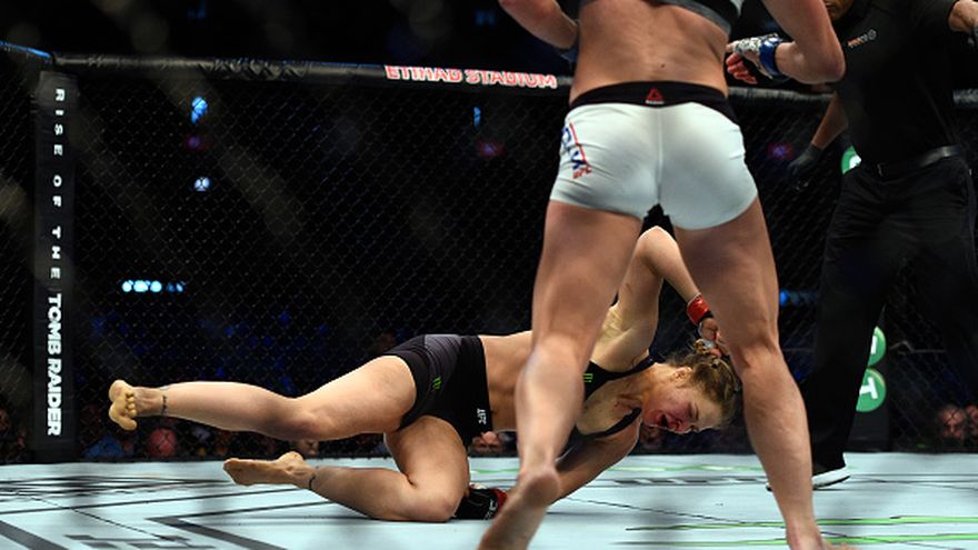 Rousey no había perdido en 12 peleas en UFC antes de medirse con Holm y una victoria habría representado su séptima defensa exitosa del título. En lugar de ello, la veterana boxeadora de Nuevo México tiene el cinturón.
