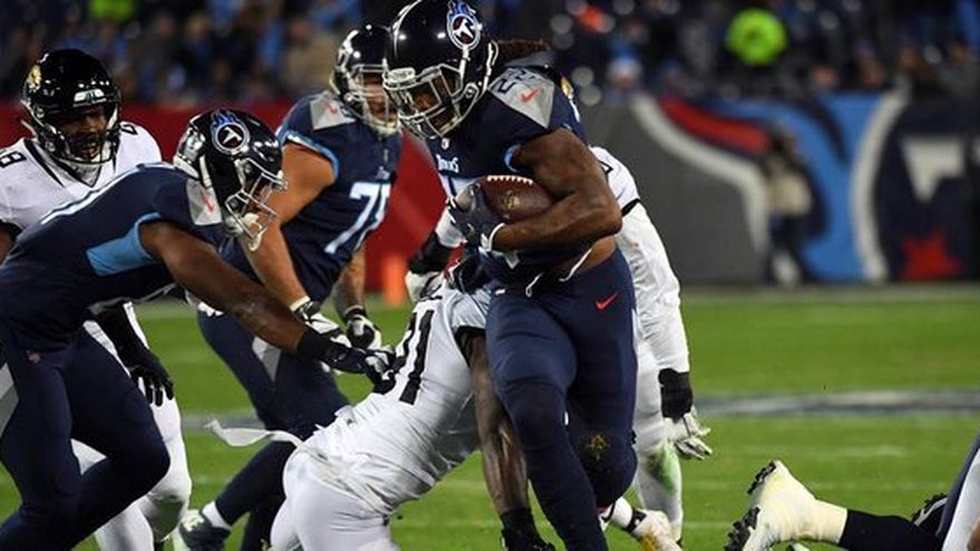El corredor estelar de los Titans avanzó por su izquierda y se escapó pegado a la línea lateral, mientras se quitaba con un brazo, primero, al esquinero A.J. Bouye, de los Jaguars, luego al liniero novato Leon Jacobs dos veces, y finalmente a otro linebacker, Myles Jack, antes de llegar a la zona de "touchdown".