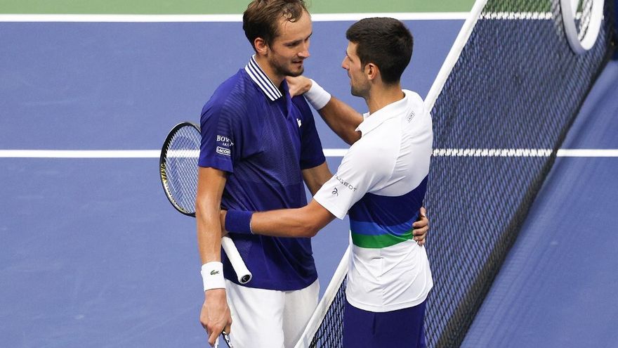 Djokovic avanzó al eliminar al ruso Karen Khachanov (N.18 mundial), en dos sets 6-4, 6-3, mientras que Medvedev se impuso al español Roberto Bautista, por un doble 6-1.