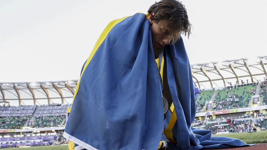 En la final de Eugene, Duplantis superó primero los 5,70 metros y necesitó de dos intentos para pasar el listón de los 5,87.