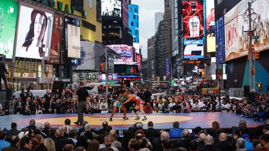 El encuentro deportivo en Times Square formó parte de una serie de exhibiciones que se realizan cada año en lugares conocidos de esta urbe, a beneficio de una organización denominada Beat the Streets que promueve la lucha entre los jóvenes.