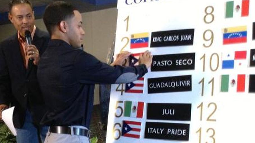 Los ejemplares que participarán en los cinco eventos de la Serie Hípica del Caribe 2012 ya fueron colocados en sus respectivos carriles los que quedaron determinados en el sorteo realizado hoy en San Juan, Puerto Rico. En cuanto a los representantes de Panamá, "Mi Sofy", "Splendido" y "Hay Que Creer" partirán de los carriles uno, tres y cuatro de la Copa Velocidad del Caribe. "Dicky"s Angel", "Texan"s Princess" , "Flor Salvaje" y "Miss Zanyatta" saldrán de los puestos cuatro, cinco, nueve y 11, respectivamente, en la Copa Dama del Caribe. En la Copa Invitacional de Importados Turismo "Smart DNA" y "Dr. John"s" saldrán de los partidores uno y cinco. Mientras que "Desbocado", "El Quiche" y "Murano Plus" correrán desde los carriles uno, siete y 10 de la Copa Confraternidad. Para la versión 45 del Clásico Internacional del Caribe, dedicada al hípico panameño Fernando Eleta, los equinos "El Respetuoso" y "Vosaye" saldrán de los carriles uno y 11. "Dicky"s Angel" estaba inscrita para correr en el clásico caribeño, pero por decisión de sus propietarios, fue dejada solamente para competir en la Copa Dama del Caribe. El sorteo se realizó con la variante de que se elegían los turnos para que los representantes de cada equino decidieran los carriles de su preferencia. En años anteriores, se escogía el nombre de un ejemplar y su representante determinaba el carril. Los carriles quedaron distribuidos de la siguiente manera: COPA VELOCIDAD DEL CARIBE (1200 metros): 1. "Mi Sofy" (Panamá) 2. "Garbosa" (Puerto Rico) 3. "Splendido" (Panamá) 4. "Hay Que Creer" (Panamá) 5. "Huracanado" (Puerto Rico) 6. "Epifanio" (México) Retiro: "Little Daylin" (Venezuela) COPA DAMA DEL CARIBE (1800 metros): 1. "Envy" (México) 2. "Taurina" (Puerto Rico) 3. "Guasca" (Venezuela) 4. "Dicky´s Angel" (Panamá) 5. "Texan"s Princess" (Panamá) 6. "Manun" (Venezuela) 7. "Glorymar M.C." (Puerto Rico) 8. "Emboscada" (México) 9. "Flor Salvaje" (Panamá) 10. "Jaleemar" (Puerto Rico) 11. "Miss Zanyatta" (Panamá) 12. "Elizee" (México) 13. "Integrista" (Puerto Rico) COPA INVITACIONAL DE IMPORTADOS TURISMO (2000 metros): 1. "Smart DNA" (Panamá) 2. "Vuelve Ruben M." (Puerto Rico) 3. "Roarin" Discovery" (Venezuela) 4. "Be Welcome" (Puerto Rico) 5. "Dr John"s" (Panamá) COPA CONFRATERNIDAD (2000 metros): 1. "Desbocado" (Panamá) 2. "King Carlos Juan" (Venezuela) 3. "Pasto Seco" (Puerto Rico) 4. "Guadalquivir" (Puerto Rico) 5. "Juli" (México) 6. "Italy Pride" (Puerto Rico) 7. "El Quiche" (Panamá) 8. "Veritas" (México) 9. "Zurcos" (Venezuela) 10. "Murano Plus" (Panamá) 11. "Buck"s" (México) CLÁSICO INTERNACIONAL DEL CARIBE (1800 metros): 1. "El Respetuoso" (Panamá) 2. "Don Carlos R" (Puerto Rico) 3. "Chao" (Venezuela) 4. "El Capricho" (Puerto Rico) 5. "Yvete Sangalo" (México) 6. "El De Chiné" (Venezuela) 7. "Copioso" (Puerto Rico) 8. "Willy" (México) 9. "Comediante" (Venezuela) 10. "Eclaire" (México) 11. "Vosaye" (Panamá) 12. "Arquitecto" (Puerto Rico) La Serie Hípica del Caribe se llevará a cabo el sábado 8 y domingo 9 de diciembre en el Hipódromo Camarero de San Juan, Puerto Rico. FOTO: Clásico del Caribe 2012 (Facebook)
