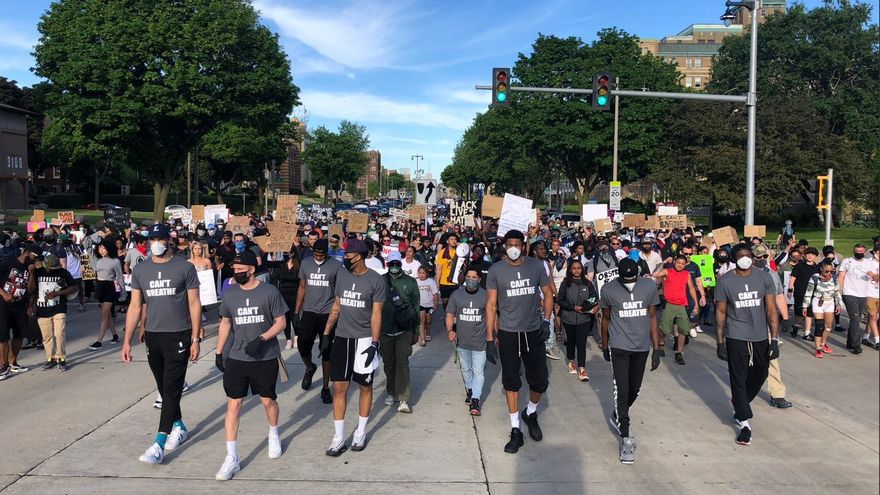 Varios jugadores de los Milwaukee Bucks, de la NBA, marcharon y hablaron en un mitin el sábado en Milwaukee, incluido el MVP de la Liga, el griego Giannis Antetokounmpo, quien lucía una camiseta que decía "I cant´t breathe" (No puedo respirar).