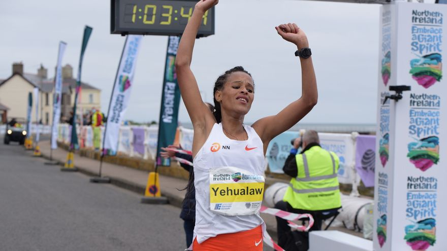 La etíope Yalemzerf Yehualaw batió el récord del mundo de medio maratón, este domingo en Larne (Irlanda del Norte), con un crono de 1 hora 3 minutos y 43 segundos, mejorando en cerca de 20 segundos la precedente marca (1:04.02), que databa de abril de 2021.