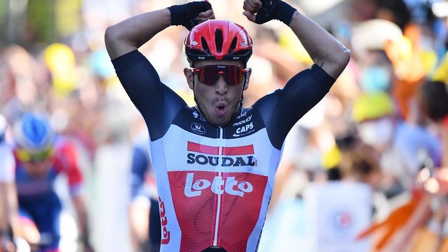Día tranquilo, final supersónico con Caleb Ewan de protagonista, capaz de buscar el hueco haciendo "eses" en un poblado esprint para adjudicarse con autoridad su cuarta etapa en el Tour, ganando el pulso al irlandés Sam Bennett (Deceuninck Quick Step) y al reciente campeón de Europa, el italiano Giacomo Nizzolo (NTT).