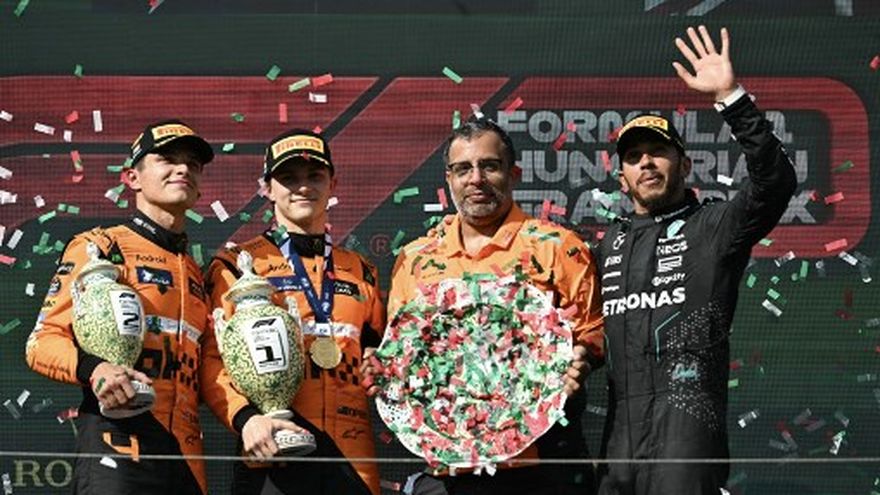 En el circuito de Hungaroring, por detrás de los McLaren (que firmó su primer doblete desde 2021), se situó el británico Lewis Hamilton (Mercedes), que completó el podio, superando al monegasco Charles Leclerc (Ferrari) y al triple campeón del mundo Max Verstappen (Red Bull), cuarto y quinto, respectivamente.