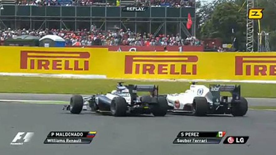 El venezolano Pastor Maldonado fue multado y acusado de ser "muy peligroso" para la Fórmula Uno el domingo tras terminar con la carrera de un rival por segunda vez consecutiva en un Gran Premio. El venezolano recibió una multa de 12.300 dólares y una reprimenda de las autoridades del Gran Premio de Gran Bretaña luego de una colisión con Sergio Pérez que dejó al mexicano fuera de la carrera en Silverstone. Hace dos semanas, Maldonado recibió una penalización de 20 segundos en el Gran Premio de Europa que lo sacó de la zona de puntos tras chocar con el inglés Lewis Hamilton y enviar a la estrella de la escudería McLaren hacia el muro. Ambos incidentes han opacado la primera victoria de Maldonado en Fórmula Uno, en el Gran Premio de España en mayo, y "Checo" Pérez, de Sauber, exige una sanción más severa para el venezolano. Pérez dijo que Maldonado "no tiene respeto por otros pilotos" y usó una palabra altisonante para referirse al sudamericano. "Sacó a Hamilton de la carrera en Valencia. No sé por qué los comisarios no ejercen más medidas contra él". "Se merece una multa grande. Arriesgamos nuestras vidas allá afuera y si no hacen algo va a lastimar a alguien. Para todos los pilotos es un conductor muy peligroso en el circuito", agregó Pérez en declaraciones a la BBC. "Yo trataba de defenderme, él intentaba rebasarme y estas son carreras". En un incidente previo con Pérez, Maldonado se cerró enfrente del mexicano durante las pruebas clasificatorias para el Gran Premio de Mónaco en mayo que le generó una sanción de 10 puestos en la parrilla de salida. Pérez se vio obligado a salir de la carrera el domingo tras ser lanzado dando giros en la 12ma vuelta del circuito de Silverstone. "No me dio ningún espacio", sostuvo el mexicano. "No tiene respeto por los otros pilotos. Es la forma como conduce". Maldonado defendió su estilo de conducir y describió el choque como un "momento muy decepcionante". "Estaba en la parte interna de la curva, por lo que era mía, Sergio estaba por fuera tratando de quitarme la posición", dijo Maldonado a la BBC. "Traté de defenderme y perdí la parte trasera del auto y chocamos neumáticos. Fue decepcionante". Maldonado terminó en el sitio 17.