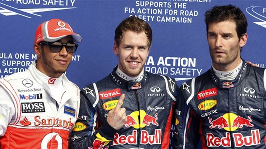 El bicampeón mundial Sebastian Vettel conquistó el sábado la pole del Gran Premio de Bahrein de Fórmula Uno, en medio de intensas medidas de seguridad ante la expectativa de posibles protestas antigubernamentales. Vettel, cuya mejor actuación este año fue el segundo puesto en la primera carrera de la temporada en Australia, registró 1 minuto, 32.422 segundos con su Red Bull, 0.98 segundo más veloz que el líder del campeonato Lewis Hamilton, de McLaren. Ambos buscan su primer triunfo de la temporada. Hamilton ha terminado en tercer lugar en las tres carreras anteriores este año. Es la primera pole para el piloto alemán en esta temporada. Su compañero Mark Webber, con Red Bull, partirá desde el tercer lugar, seguido de la otra McLaren de Jenson Button. Nico Rosberg, de Mercedes, que conquistó su primer Gran Premio la semana pasada en China, fue quinto en la clasificación, pero su compañero Michael Schumacher, múltiple campeón mundial, no superó la primera sesión de clasificación y partirá desde el puesto 18. Daniel Ricciardo, de Toro Rosso, largará desde el sexto lugar en la mejor clasificación que ha logrado hasta ahora en su breve presencia en la máxima categoría del automovilismo. Hamilton logró superar a Webber en su última vuelta de clasificación y se manifestó entusiasmado por sus posibilidades de dar batalla a las Red Bulls. "He puesto el auto en la primera fila en todas las carreras este año, y siento que este fue uno de mis mejores desempeños en la clasificación hasta ahora", dijo Hamilton. "Mis vueltas en la tercera clasificación fueron muy buenas y siento que estoy haciendo rendir el auto al máximo. Cruzo los dedos para mañana: los dos pilotos de Red Bull serán muy difíciles de vencer en la carrera, pero estamos a menos de una décima de segundo de diferencia. La largada puede ser clave". El mexicano Sergio Pérez, al volante de Sauber, fue el hispanoamericano de mejor colocación y partirá desde el octavo lugar. Los brasileños Felipe Massa (Ferrari) y Bruno Senna (Williams) obtuvieron los puestos 14 y 15, y el decimoséptimo fue para el venezolano Pastor Maldonado. Ferrari siguió con dificultades. Fernando Alonso se clasificó noveno, aunque no corrió en la última sesión de clasificación a fin de ahorrar neumáticos para la carrera, que se anticipa será difícil para las gomas. Paul di Resta, de Force India, tampoco corrió la tercera sesión clasificatoria y partirá décimo. Rosberg tuvo una clasificación relativamente decepcionante después de haber registrado el mejor tiempo en la tercera práctica. "Me sentí cómodo durante la clasificación", comentó. "Pero como nos hemos concentrado en nuestro ritmo de carrera, siempre hay algo que hacer en la clasificación. Creo de todos modos que estoy en una buena posición para la carrera de mañana. Soy el único corredor entre los cinco primeros que tiene la opción de nuevos neumáticos que puede ser muy útil en este circuito". Schumacher, por su parte, tuvo problemas con el alerón trasero. "Evidentemente estoy muy decepcionado de haberme clasificado en el puesto 18 para una carrera que luce muy competitiva para nosotros", dijo el alemán. "Lamentablemente en mi última vuelta, que lucía muy bien, mi DRS (sistema de reducción de resistencia) se quebró en el último sector. Tratamos de arreglarlo en el garaje pero no pudimos volver a salir". Durante gran parte de la jornada los pilotos enfrentaron duras condiciones en la pista, con temperaturas de hasta 43 grados centígrados (109 F) y vientos que arrastraban arena del desierto circundante. En medio del refuerzo de la seguridad, las autoridades abrieron el sábado una investigación después que se halló el cadáver de un hombre cerca del escenario de los choques el viernes entre manifestantes y fuerzas de seguridad, a unos 20 kilómetros del autódromo. Grupos de oposición dijeron que el hombre fue muerto por la policía antimotines. La pequeña nación insular se ha visto convulsionada por protestas antigubernamentales que el año pasado obligaron a cancelar el Gran Premio. Una declaración del ministerio del interior dijo que se investigaba, aunque de todos modos la muerte seguramente intensificará la ola de protestas contra la carrera durante la jornada. Se habían montado puestos de seguridad en las carreteras conducentes al autódromo internacional. También se emplazaron efectivos de seguridad en torno del circuito y en la capital Manama. Pero el sábado temprano no había indicios de protestas en las cercanías. Los manifestantes han demandado la cancelación de la carrera hasta que la dinastía suní gobernante instrumente reformas significativas para satisfacer las demandas de la mayoría chií y ponga fin a los abusos a los derechos humanos. Las páginas en los medios sociales convocaron a manifestaciones para aprovechar la atención de los medios en la carrera. La mayoría chií se siente discriminada por la monarquía suní respaldada por occidente. Por lo menos 50 personas han muerto en medio de las protestas y la represión desde febrero del 2011.