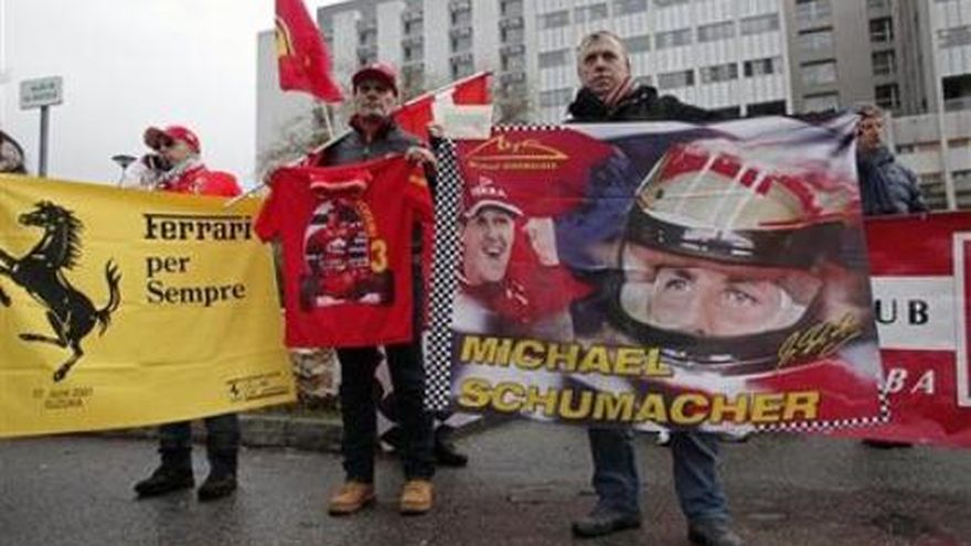 Los familiares y amigos de Michael Schumacher se turnaron el viernes para estar al tanto del piloto alemán en su cama de hospital, mientras algunos aficionados se reunían afuera del recinto para homenajear al astro de la Formula Uno por su 45to cumpleaños. Schumacher se encuentra en coma inducido desde el domingo, cuando se golpeó la cabeza contra una roca mientras esquiaba. Su mánager, Sabine Kehm, dijo el viernes que su condición se mantiene estable pero crítica. El piloto alemán y su familia por lo general celebran la Navidad, el Año Nuevo y su cumpleaños en una cabaña para esquiar en el centro turístico francés de Meribel, donde ocurrió el accidente. Pero esta vez han estado atentos a la evolución del campeón retirado en el hospital de Grenoble. "Se turnan para cuidarlo: la esposa de Michael, sus hijos, su hermano", dijo ex piloto de Fórmula Uno Philippe Streiff, quien es uno de varios miembros de la comunidad de la F1 que visita el hospital. "Están muy acongojados. Es doloroso ve eso en la familia". Unos 100 admiradores también llegaron al hospital el viernes procedentes de Italia, el norte de Francia y otros lugares, ya que, según dijeron, se sentían obligados a honrar a un hombre que les dio muchas razones para celebrar en el pasado. Al anochecer, algunos aficionados usaron un proyector para iluminar las paredes del hospital con las palabras "Sé fuerte" y "Sigue luchando". "Por toda la alegría que nos ha dado, era importante para nosotros regresarle el favor y estar aquí por Michael", dijo Gulio Carissomi, quien condujo cuatro horas desde Italia para llegar a Grenoble. Un grupo de aficionados desplegó una gran bandera de Ferrari, la escudería por la que Schumacher competía. La familia, que ha publicado periódicamente mensajes en la página web de Schumacher, escribió el viernes por la noche que se sentían "abrumados" por las muestras de apoyo. "Las increíbles muestras de solidaridad por parte de aficionados de Ferrari afuera del hospital nos han abrumado y conmovido hasta las lágrimas", dijo. El siete veces campeón de la Fórmula Uno ha sido operado del cerebro en dos ocasiones desde el accidente. Los médicos lo mantienen sedado y su cuerpo es mantenido a baja temperatura para ayudar al proceso de sanación. Los doctores son renuentes a hacer un pronóstico sobre la salud de Schumacher a largo plazo y enfatizan que tienen como prioridad la atención inmediata del paciente. Schumacher, conocido afectuosamente como "Schumi", es el piloto más laureado en la historia de la Fórmula Uno, con la marca histórica de 91 carreras ganadas. Se retiró en 2012. "Hoy es el cumpleaños de Michael Schumacher. En estos momentos disputa la carrera más importante de su vida y queremos rendirle un tributo especial", dice la declaración. "Forza (Ánimo) Michael".