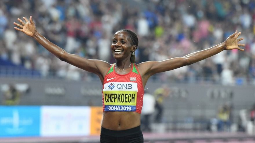La keniana Beatrice Chepkoech consiguió su primer título mundial en los 3.000 metros obstáculos, este lunes en Doha, con un tiempo de 8 minutos, 57 segundos y 84 centésimas, que constituye un nuevo récord de los Mundiales.
