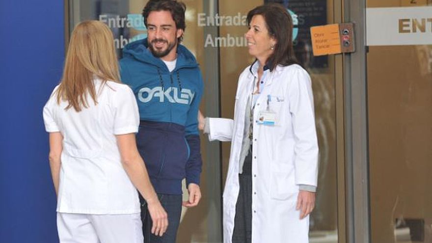 El auto de Alonso se estrelló contra un muro durante ensayos el domingo pasado y el piloto español fue llevado en helicóptero a un hospital, donde permaneció tres días como medida preventiva, sometiéndose a todo tipo de exámenes para descartar lesiones internas. Actualmente reposa en la casa de su familia.