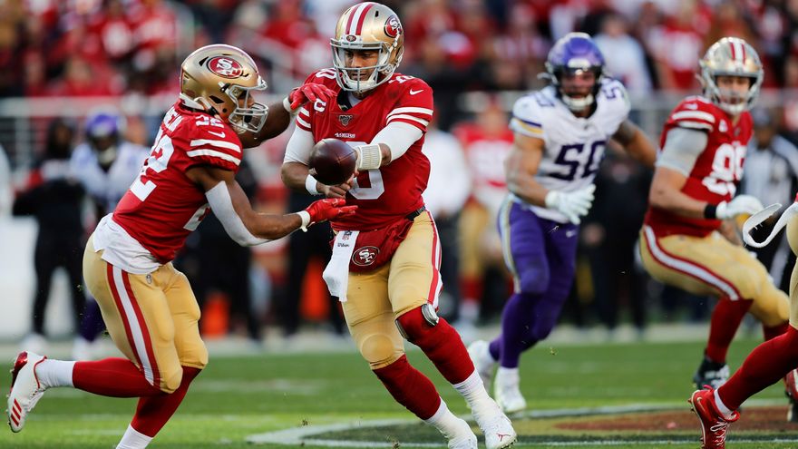El mariscal de campo Jimmy Garoppolo lanzó pase de touchdown en su primer intento como titular de playoffs y los 49ers de San Francisco vencieron 27-10 a los Vikings de Minnesota en la etapa de división de la Conferencia Nacional.