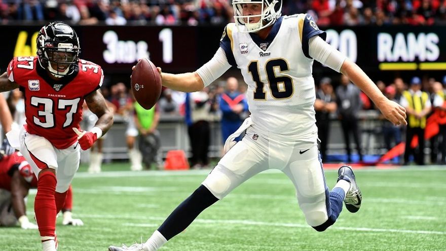 El mariscal de campo Jared Goff lanzó dos anotaciones y corrió para otra, y los Rams de Los Ángeles vencieron 10-37 a los Falcons de Atlanta.