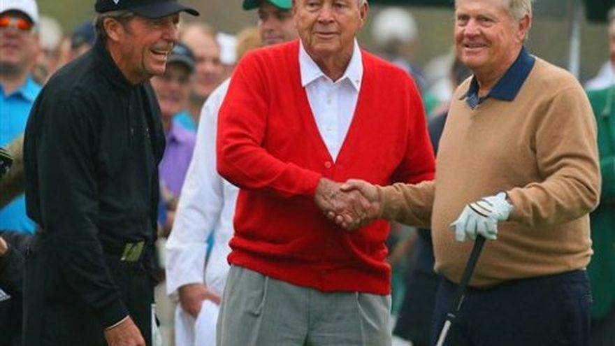 Tres de los más grandes golfistas de todos los tiempos, Arnold Palmer, Gary Player y Jack Nicklaus, hicieron disparos ceremoniales para dar comienzo el jueves al Masters de Augusta, el primero de los grandes torneos de la temporada. Palmer, de 83 años, se mostró tan complacido con su disparo que elevó la mano al aire en señal de triunfo y el público lo ovacionó. Sandy Lyle, John Peterson y el aficionado Nathan Smith empezaron a continuación sus rondas bajo un cielo encapotado después de tres días soleados y calurosos de prácticas. Había posibilidad de lluvia por la tarde. Lyle y Smith incurrieron en bogeys en el primer hoyo. El líder inicial era el sueco Carl Pettersson, con birdies en sus dos primeros hoyos. El favorito Tiger Woods iniciaba su actuación al filo del mediodía.