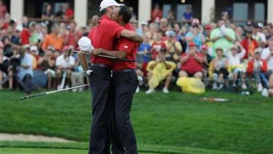 Hay dos constantes en la Copa Presidentes que se disputa en el campo de golf de Muirfield Village, la lluvia y el dominio de los estadounidenses. Tiger Woods y Matt Kuchar siguieron invictos al imponerse por uno, en un duelo que no se resolvió sino hasta el último putt. Kochar embocó su golpe para birdie, a unos cinco metros del hoyo, para propinar al australiano Adam Scott y al japonés Hideki Matsuyama su primera derrota en esta semana. Los estadounidenses ganaron cuatro de los cinco duelos en la modalidad de "fourballs" o golpes alternados. Cuatro de éstos llegaron al menos hasta el hoyo 17. Así, Estados Unidos tomó una ventaja de 10 1/2-6 1/2 de cara a la sesión vespertina de foursomes. Pero debido a otro retraso por la lluvia, no finalizarán sino hasta el domingo por la mañana. Fue el cuarto año consecutivo en que los estadounidenses han tenido una ventaja de al menos tres a la mitad de la Copa Presidentes. "Tuvimos duelos cerrados que se inclinaron a favor de Estados Unidos", dijo el zimbabuense Nick Price, capitán del equipo internacional. "Nos quedan todavía 17 puntos, y eso es lo que digo a los compañeros. Están un poco decepcionados después de lo que ocurrió esta mañana". La tarde había llegado ya cuando terminó la sesión "matutina". Los duelos del viernes tuvieron que completarse el sábado por la mañana, y aunque hubo algunos intervalos de lluvia, éstos bastaron para dejar algunos charcos en los greens y en las trampas de arena. Hizo falta tiempo para dejar listo el campo. Brandt Snedeker y Hunter Mahan ganaron por primera vez, en un duelo ante los sudafricanos Louis Oosthuizen y Charl Schwartzel. El australiano Jason Day y el canadiense Graham DeLaet dieron al equipo internacional su última victoria en fourballs, al imponerse a Steve Stricker y Jordan Spieth. El argentino Ángel Cabrera, después de ganar un encuentro de foursomes el sábado por la mañana, tuvo problemas con su espalda y careció de oportunidad ante Branden Grace, el único jugador que no llevaba puntos.