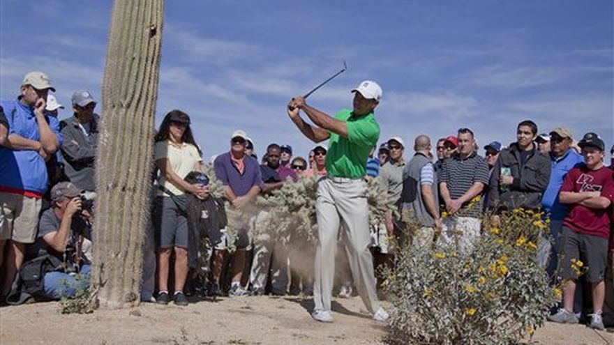 Luke Donald no jugará el hoyo 18 en Dove Mountain este año en una de las situaciones extraordinarias, como un tiro de izquierda de Tiger Woods, que ocurrieron el miércoles en el torneo Match Play. Donald, tan dominante al ganar el Match Play del año pasado que terminó cada encuentro antes del hoyo 18, se convirtió ahora en el tercer caso en que el primer favorito pierde en la primera ronda del torneo. Ernie Els, quien formó parte de los 64 competidores sólo porque Phil Mickelson decidió llevar a su familia de vacaciones, ofreció el momento más desconcertante de la primera ronda al vencer por 5 y 4. "Creo que no hubiera importado contra quién hubiera yo jugado hoy. Simple y sencillamente no jugué bien", dijo Donald. "Me esforcé. Cedí demasiados hoyos y tuve demasiados errores. No se puede hacer eso en un match play contra nadie, menos contra Ernie". Tiger Woods estuvo a punto de caer en una situación similar contra el español Gonzalo Fernández Castaño. Woods tuvo que tirar de izquierda en uno de sus tres salidas al desierto. Estuvo detrás del español con cuatro hoyos por jugarse, y ambos parecieron con posibilidades de perder. Esa situación cambió cuando Woods llegó al green del hoyo 15, de par cinco, y ganó con un birdie en dos putts. Luego ganó el 16to con par y se impuso a Fernández Castaño con un putt en par de mediana distancia para ganar por uno hoyo. "Los dos tuvimos nuestros errores, sin duda", dijo Woods. "Pero, de alguna manera, pude avanzar". Ese es el único objetivo en este torneo, con un formato de eliminación individual en el que el único uso de la palabra "perturbado" es el humor de los 32 competidores que van en camino de regreso a casa.