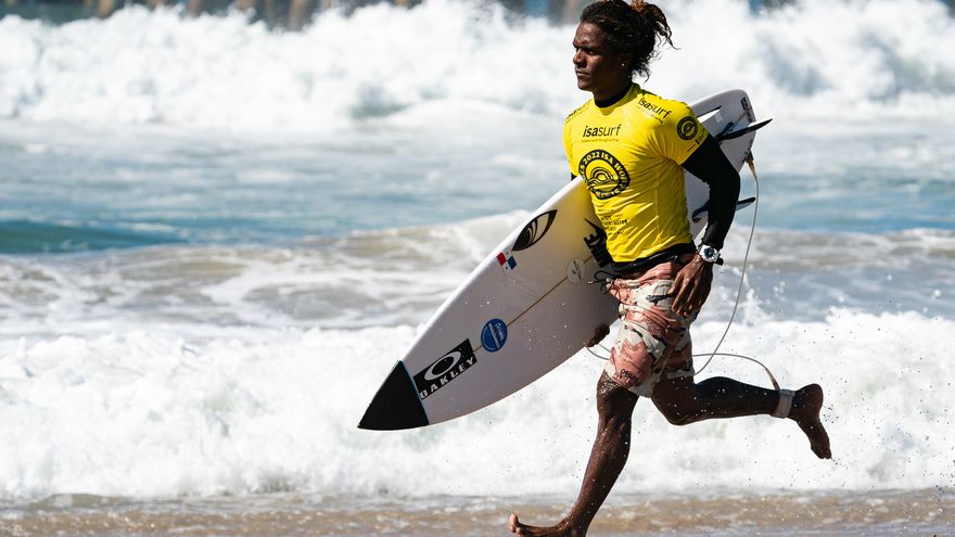 El panameño Jean Carlos"Oli" González tuvo acción sobre las olas de la playa Hungtinton de California, Estados Unidos, en el cuarto día de competencia de los ISA World Surfing Games 2022.