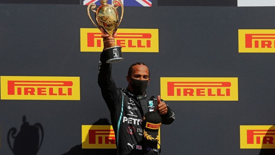 Hamilton, que amplía a siete su récord de victorias en el Gran Premio de su país, da un nuevo paso hacia un séptimo título mundial, aumentando su ventaja en la general, pese al percance, que le obligó a terminar con tres ruedas útiles.