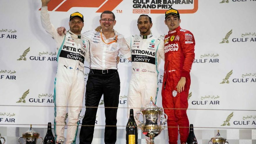 El británico Lewis Hamilton, quíntuple campeón mundial de Fórmula Uno, lideró este domingo un nuevo doblete de Mercedes en Baréin, donde ganó por delante de su compañero, el finlandés Valtteri Bottas, y del joven monegasco Charles Leclerc, que pilotaba hacia un triunfo seguro antes de que su Ferrari perdiese potencia a falta de ocho vueltas, aunque salvó por los pelos el tercer puesto.