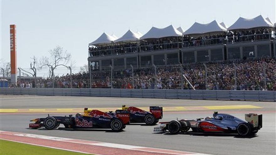Una audaz maniobra de Lewis Hamilton en una recta a falta de 15 vueltas para el final permitió al piloto de McLaren rebasar a Sebastian Vettel y así conquistó el domingo la victoria en el Gran Premio de Estados Unidos. El triunfo del británico Hamilton mantuvo abierta la lucha por el título de la Fórmula Uno, el cual se definirá la semana próxima en Sao Paulo con el GP de Brasil, luego que Vettel quedara en el segundo lugar por delante del español Fernando Alonso. Vettel comenzó la carrera en la pole position y lideró durante las primeras 41 vueltas. Pero Hamilton nunca dejó de insistir y logró el adelantamiento cuando quedaban 15 vueltas para el final en el circuito de las Américas, la pista que albergó la primera carrera de F1 en territorio estadounidense desde 2007. La ventaja de Vettel sobre Alonso en el campeonato de pilotos ahora es de 13 puntos.