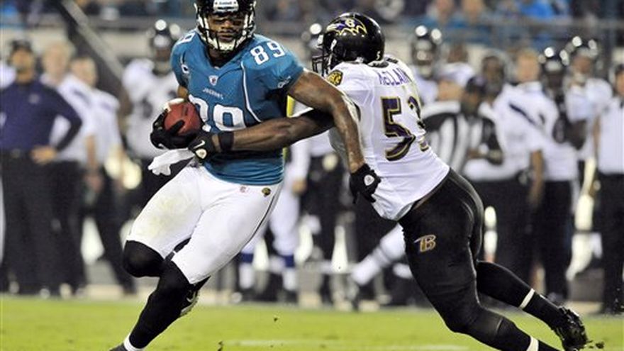 Por una noche, ante los reflectores, los Jaguars de Jacksonville hicieron mejor las cosas que los Ravens de Baltimore. Maurice Jones-Drew sumó el lunes 105 yardas por tierra en contra de la mejor defensiva terrestre de la NFL, Josh Scobee terminó con cuatro goles de campo y los Jaguars rompieron una racha de cicno derrotas consecutivas con un triunfo de 12-7 sobre los Ravens. Los Jaguars se encuentran en el último lugar de la liga en ataque ofensivo y su única esperanza suele ser Jones-Drew. El running back terminó con 30 acarreos, la mayoría de ellos justo por el centro de la venerada defensiva de Baltimore. Recibiendo la atención a nivel nacional por unas cuantas horas, los Jaguars exhibieron su mejor esfuerzo defensivo en cinco años para frenar a Ray Rice, Joe Flacco y compañía. Jacksonville (2-5) no concedió una sola primera y diez hasta la marca de 5:26 minutos del tercer cuarto, en una combinación de solidez defensiva de Jacksonville e ineptitud ofensiva de Baltimore. Flacco finalmente pudo poner a los Ravens (4-2) en el marcador con poco más de dos minutos del final del partido. Coronó una serie ofensiva de 90 yardas con un pase de anotación de cinco yardas para Anquan Boldin. Los Ravens terminaron con 146 yardas totales. Los Jaguars con 205. Los Jaguars implantaron un récord de franquicia al conceder solamente 16 yardas en la primera mitad, entre ellas una sola yarda aérea de Flacco, quien estuvo bajo la fuerte presión de la defensiva de Jacksonville durante la mayor parte del partido. Flacco completó 21 de 38 de sus pases para 137 yardas. Rice tuvo ocho acarreos para sumar tan solo 28 yardas.