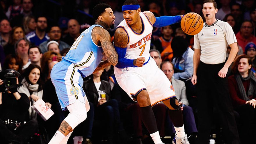 Carmelo Anthony y J.R. Smith anotaron 28 puntos cada uno para ayudar a los New York Knicks a romper una racha de siete derrotas en fila con un triunfo el domingo por 109-93 sobre los Denver Nuggets. Aaron Afflalo aportó 18 puntos y Ty Lawson sumó 17 unidades y nueve asistencias por los Nuggets, que han perdido siete de sus últimos ocho juegos. Kenneth Faried añadió 16 tantos. Samuel Dalembert terminó con ocho puntos y ocho rebotes por Nueva York, que había ganado por última vez el 2 de noviembre en un duelo con Charlotte. Perdiendo por 25 puntos después de que un tiro de campo de Anthony colocara la pizarra 79-54 a favor de los Knicks a 5:36 minutos del final del tercer cuarto, Denver inició una racha de 25-10 que coronó con una jugada de tres puntos de Nate Robinson que puso el marcador 89-80 con 8:55 minutos por jugar. Pero Nueva York tomó una ventaja definitiva con su propia serie de 13-3 a la ofensiva.