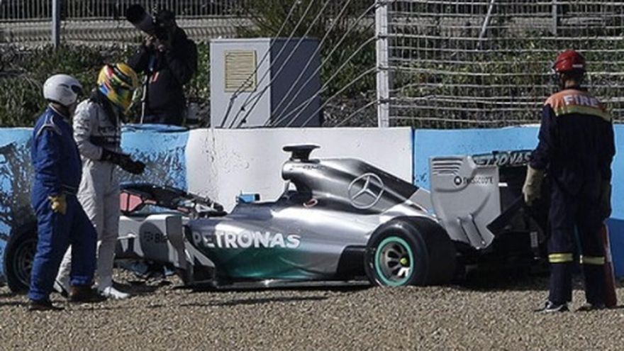 JEREZ - El británico Lewis Hamilton (Mercedes) ha sufrido un accidente en la vuelta 18 de sus ensayos en la jornada inaugural de los entrenamientos oficiales que las escuderías de la Fórmula Uno desarrollan hasta el próximo viernes en el Circuito de Jerez. Tras ser por la mañana el primer piloto en iniciar estos test, después de un tiempo en el garaje del equipo, Hamilton ha vuelto a la pista para marcar el mejor tiempo hasta el momento con 1.27.820 antes de salirse en la curva Expo 92 tras su giro 18 después de pasar por la recta de meta. Debido al golpe del monoplaza, los entrenamientos han sido interrumpidos momentáneamente por la dirección de carrera, siendo mostrada la bandera roja. Ha sido necesaria la entrada en la pista de una grúa para evacuar el coche. La escudería Mercedes ha informado de que el piloto británico Lewis Hamilton se encuentra "bien" tras el accidente sufrido. "Podemos confirmar un fallo del alerón delantero. La razón ahora está siendo investigada", han apuntado los responsables de Mercedes sobre el accidente. Continúan los entrenamientos en el Circuito de Jerez en una jornada con muy poca participación hasta el momento. Únicamente cinco pilotos han salido en algún momento a la pista desde que diera comienzo la sesión a las 9 de la mañana. Todavía no lo ha hecho el actual campeón del mundo, el alemán Sebastian Vettel (Red Bull).
